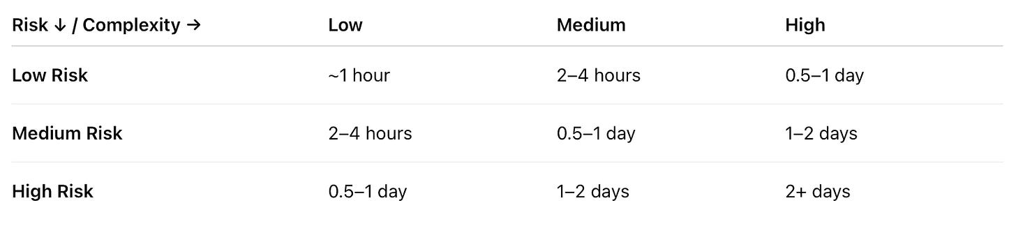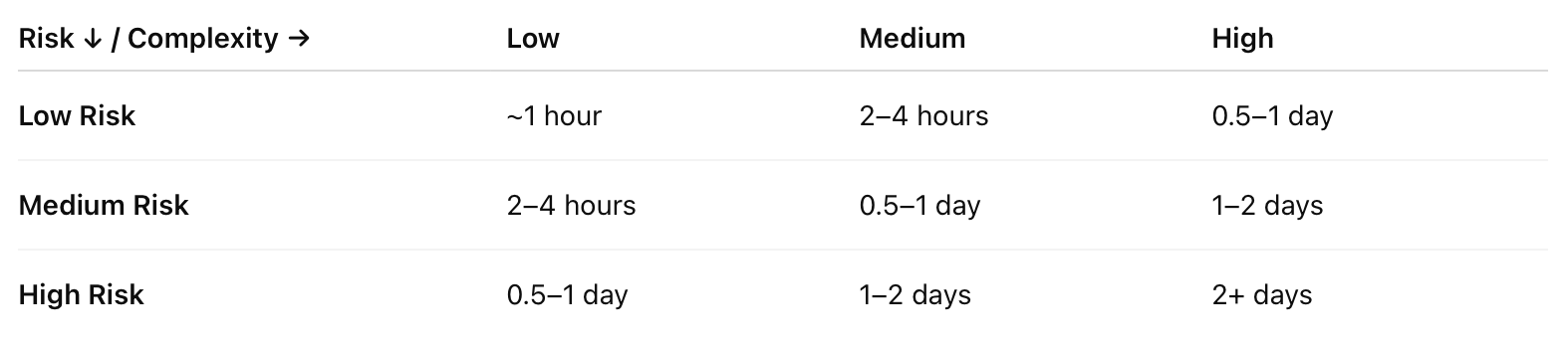 Risk × Complexity → Effort (heuristic)