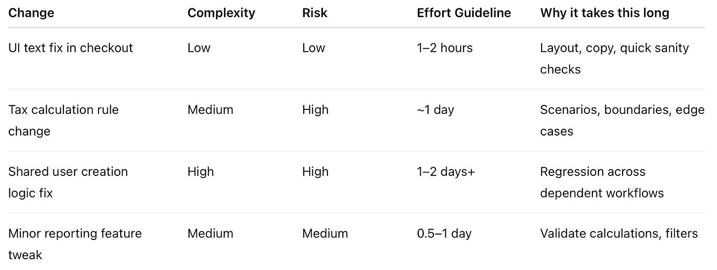 “How long will testing take?” collapses many different activities into a single number: